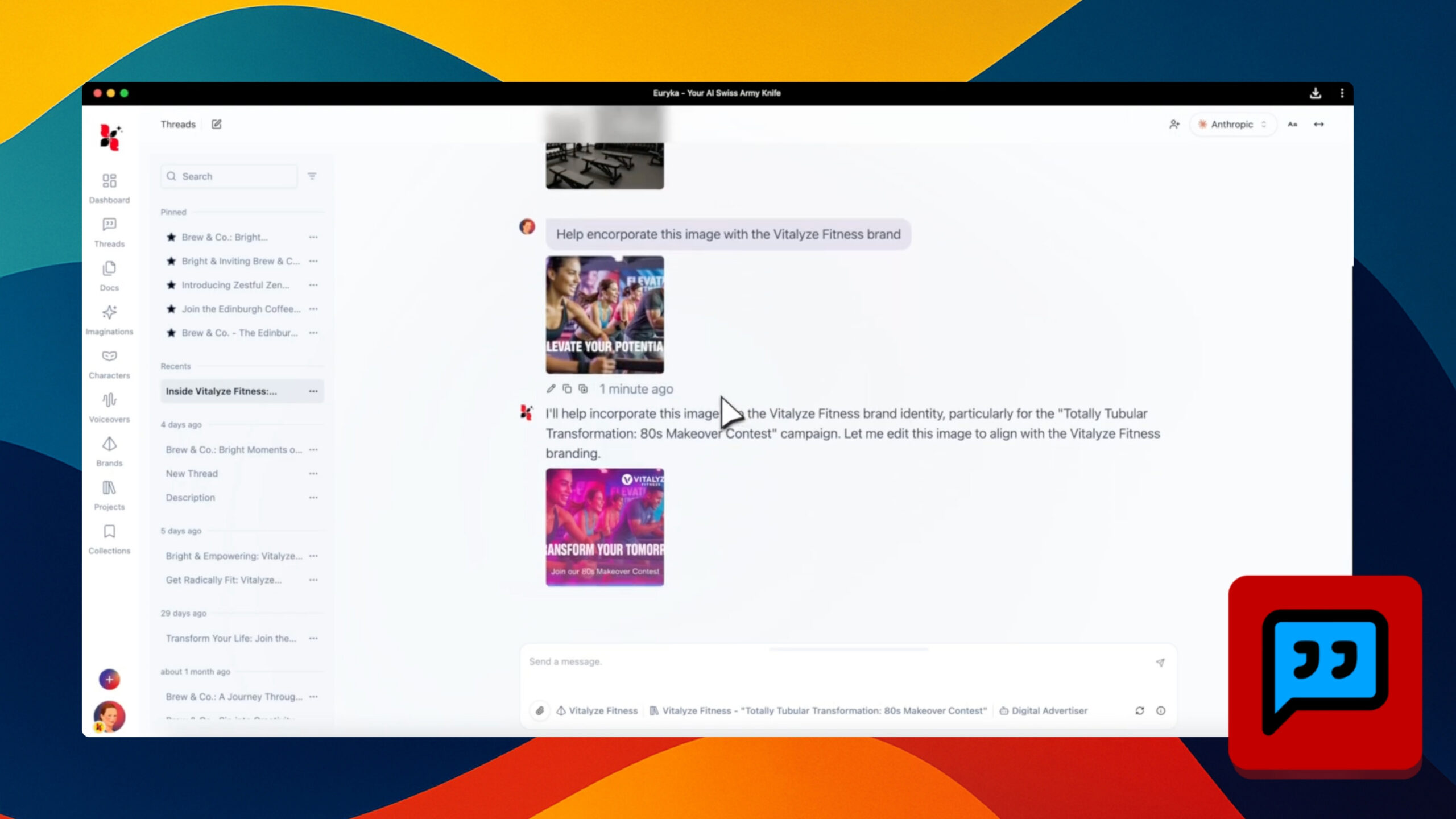 Imagine creating and refining visuals without ever leaving your team’s brainstorming chat—welcome to the visually-powered Euryka Threads! In this video, see how you can simply ask any LLM to generate an image right within your thread, bringing your visual ideas to life in seconds. Prefer to start with your own visuals? Upload images directly into ...