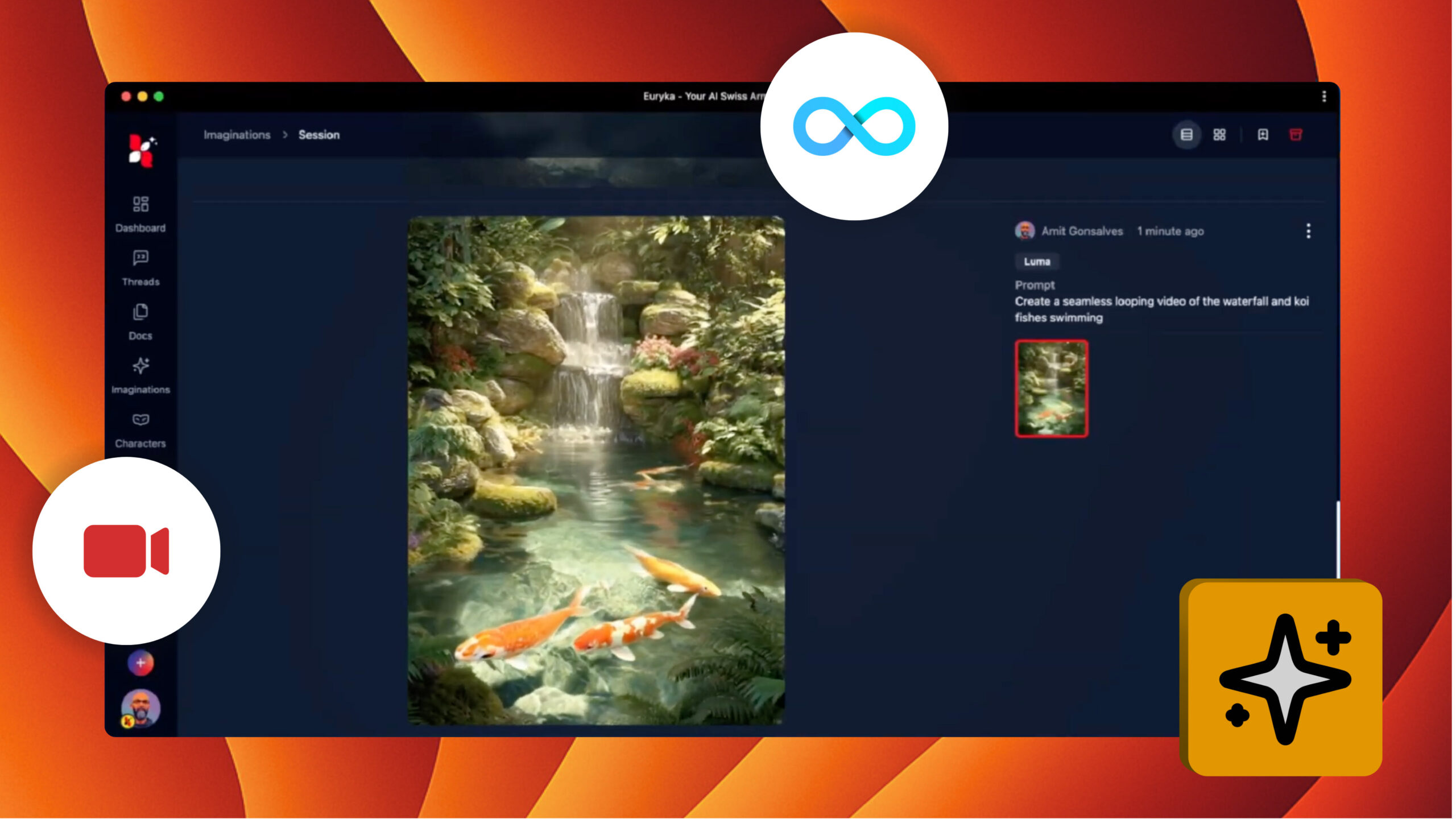 Create mesmerising, seamless video loops that capture attention and elevate your content. Euryka's Loop Video feature makes it simple to generate professional-quality looping videos, from flowing water to abstract patterns, perfect for engaging your audience. Step-by-Step Guide Ready to captivate your audience? Start creating your first seamless loop and bring a dynamic, professional quality to ...