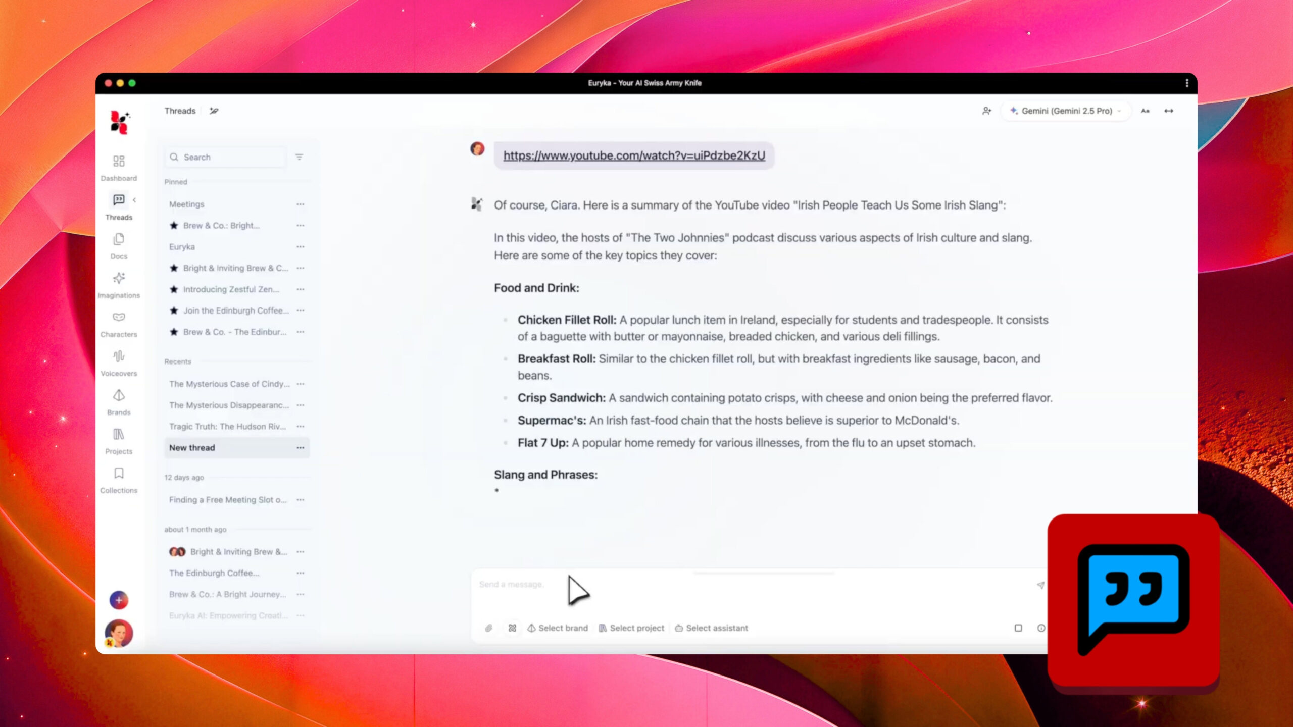 Experience the power of video content directly within your workflow. Euryka Threads allows you to instantly transcribe any YouTube video, transforming spoken content into workable text for analysis, summarisation, or repurposing, saving you hours of valuable time and manual effort. Step-by-Step Guide This simple feature unlocks immense potential for your research and content strategy, turning ...