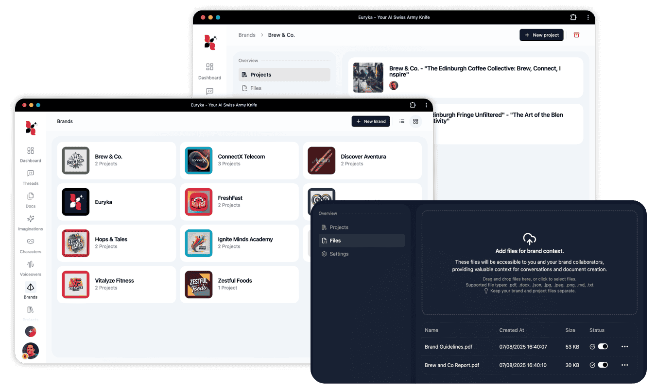 Discover how to elevate your AI's performance in Euryka with our new Brand & Project Files feature! This video will guide you through attaching files directly to your Brands and Projects, transforming how your AI understands and generates content. Elevate your AI's intelligence by training it with your specific brand and project files. This process ...